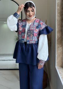 ست سه تیکه شومیز دامن نیلای