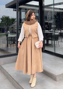 ست شومیز دامن مخمل شتری