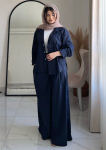 ست دامن شلواری و مانتو ماه بانو سرمه ای
